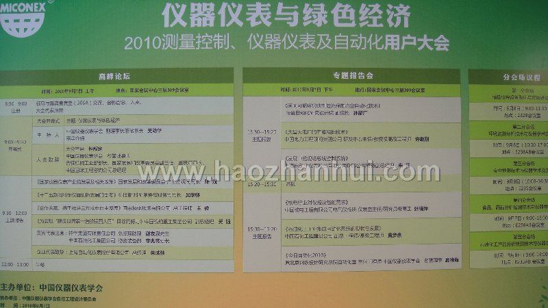 | 第二十一屆多國儀器儀表學術會議暨展覽會(MICONEX2010) | |