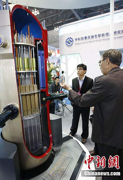 4月12日,第十屆中國重慶高新技術交易會暨第六屆中國國際軍民兩用技術博覽會在渝開幕。此次展會匯聚國內外各領域的高、精、尖技術成果35000余項,將向市場推介1507項最新軍民兩用技術成果。來自美德等35個國家和地區(qū)的180個代表團、2100個企業(yè)參展。圖為1:5比例的多用途模塊式小型核反應堆模型。(來源:中新網(wǎng))