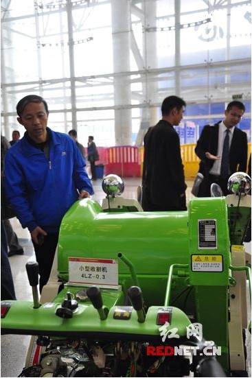 2012全國農業機械展覽會在湖南國際會展中心舉行,一臺號稱全球最小最輕的收割機吸引了參觀者的目光。