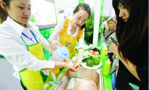 5月6日,在中國國際清潔產(chǎn)業(yè)博覽會上,工作人員演示清潔產(chǎn)品的對比實驗。當日,為期3天的2012中國國際清潔產(chǎn)業(yè)博覽會在北京國家會議中心開幕。本屆博覽會的主題是“新清潔點亮新生活”,吸引了國內(nèi)外上百家清潔企業(yè)攜最新清潔技術和理念參加。(來源:新華網(wǎng))