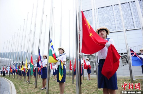 5月11日,韓國麗水世博會參展國家和地區(qū)國旗(區(qū)旗)升旗儀式在世博園區(qū)舉行。105個參展國家和地區(qū)的旗幟冉冉升起。本次世博會將于12日正式開幕,為期93天。(來源:中新網(wǎng))