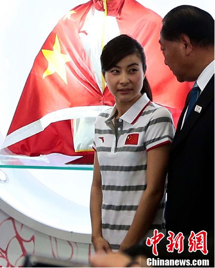 5月17日,2012中國(guó)國(guó)際體育用品博覽會(huì)在北京新國(guó)展中心開幕,活動(dòng)引來不少體育明星到場(chǎng),郭晶晶匆匆亮相拒談婚期。 圖為郭晶晶(左)、許海峰到場(chǎng)。(來源:中新社)