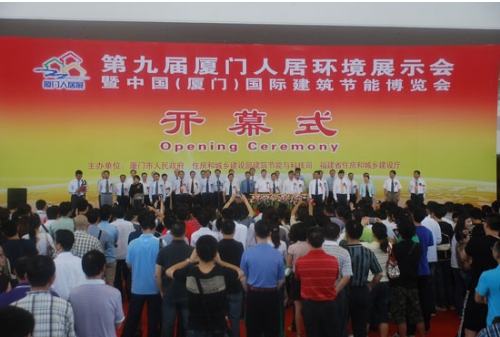 5月18日上午,“第九屆廈門人居環(huán)境展示會暨中國(廈門)國際建筑節(jié)能博覽會”在廈門國際會展中心隆重開幕。此次展會由廈門市人民政府、住房和城鄉(xiāng)建設(shè)部建筑節(jié)能與科技司、福建省住房和城鄉(xiāng)建設(shè)廳共同主辦。住房和城鄉(xiāng)建設(shè)部建筑節(jié)能與科技司司長陳宜明先生、住房和城鄉(xiāng)建設(shè)部科技發(fā)展促進(jìn)中心主任、廈門市人大常委副主任、廈門市人民政府副市長林國耀先生、福建省住房和城鄉(xiāng)建設(shè)廳總工程師周武進(jìn)先生、協(xié)辦單位領(lǐng)導(dǎo)、廈門各級政府領(lǐng)導(dǎo)、廈門新城建設(shè)指揮部領(lǐng)導(dǎo)、重點項目參展單位領(lǐng)導(dǎo)、特邀協(xié)辦單位領(lǐng)導(dǎo)、企業(yè)領(lǐng)導(dǎo)等共同見證了儀式的啟動。