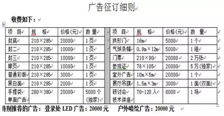 |  其他贊助 | 1、晚宴(獨家) 2、紙杯贊助 3、觀眾資料袋贊助 4、瓶裝礦泉水贊助 5、禮品贊助  |