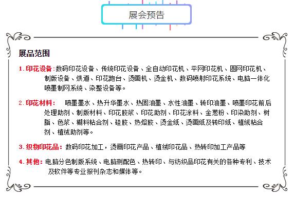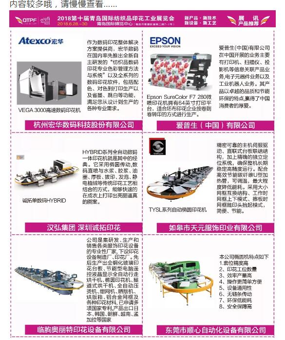 “2018第十屆青島國(guó)際紡織品印花工業(yè)展覽會(huì)”即將開展,我們整理了第一波“新產(chǎn)品·新技術(shù)·新設(shè)備·新工藝”的信息播報(bào)給你們,后續(xù)更多的產(chǎn)品資訊推送,請(qǐng)做好準(zhǔn)備!