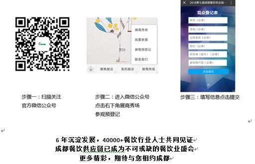 同時,第七屆成都餐飲供應鏈展也將精準投放信息,預計匯聚40000名專業觀眾齊聚成都,共襄盛舉!