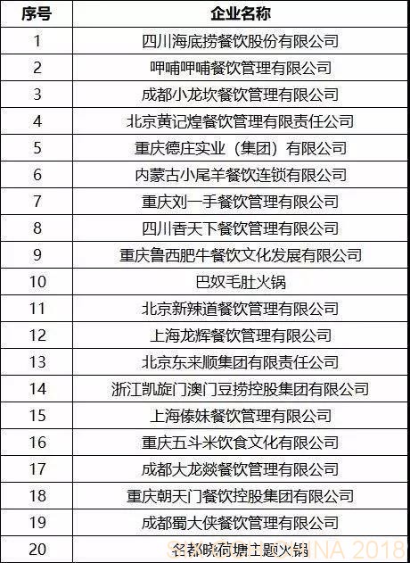 正餐高質(zhì)量、特色化發(fā)展特點(diǎn)明顯;團(tuán)餐成為增長(zhǎng)最快的餐飲業(yè)態(tài);火鍋品類(lèi)增長(zhǎng)放緩。四川海底撈餐飲股份有限公司成為領(lǐng)軍企業(yè),呷哺呷哺餐飲管理有限公司、成都小龍坎餐飲管理有限公司進(jìn)入前三甲。