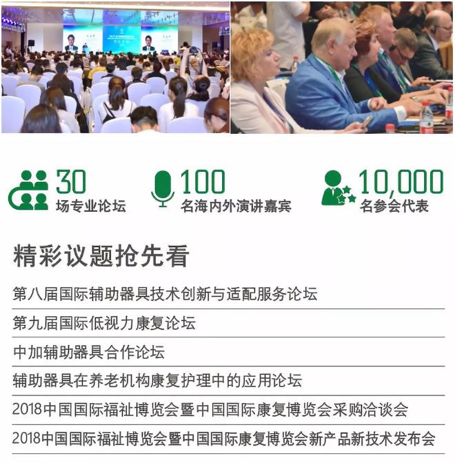 2018年10月11-13日,中國最大的福祉及康復博覽會——中國國際福祉博覽會暨中國國際康復博覽會(CR Expo)將在北京國家會議中心隆重舉辦。本屆展會規模擴容升級至25,000平方米,將匯聚350家國內外來自康復、輔助器具、養老健康等領域的領軍企業,預計吸引50,000專業觀眾前來參觀。同期舉辦30余場高規格會議活動,助力與會者實現卓有成效的交流與合作。
