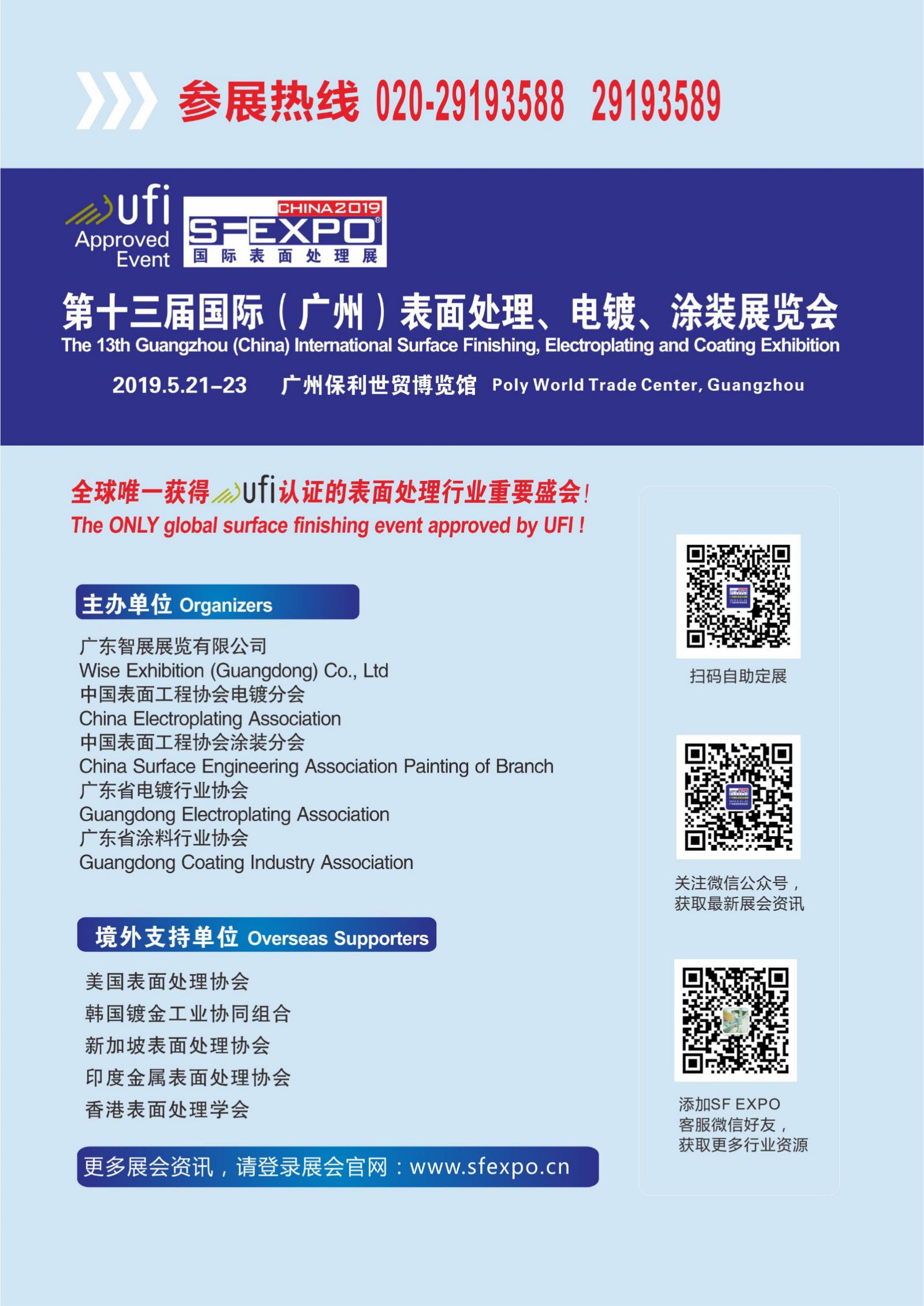 而作為深耕珠三角地區(qū)十多載的國際(廣州)表面處理 電鍍 涂裝展覽是國內(nèi)最專業(yè),發(fā)展最迅速的表面處理專業(yè)展覽會,一直以來都受到行業(yè)人士的認(rèn)可及推崇!2019第十三屆國際(廣州)表面處理 電鍍 涂裝展覽會,2019年5月21-23日,廣州保利世貿(mào)博覽館,我們再次相約,共聚行業(yè)盛會!