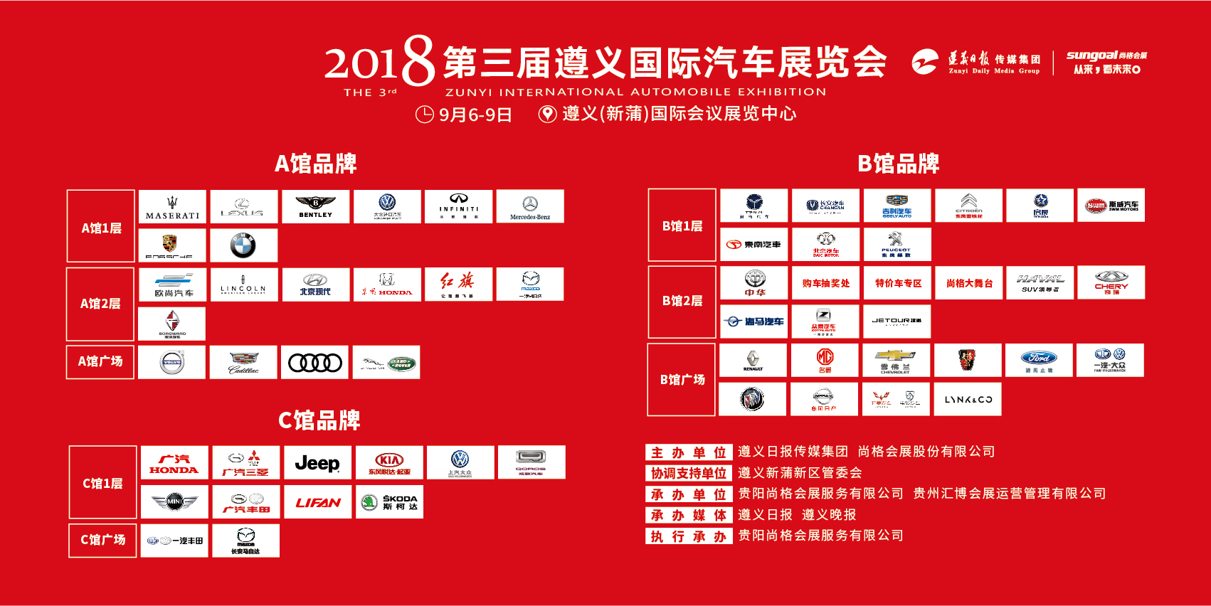 2016年,尚格會展成功進駐紅城,傾力打造的遵義國際車展,開創了遵義市室內國際車展的先河。在市政府各相關單位的鼎力支持下,遵義國際車展已成功舉辦二屆,喜人的人氣和銷量,讓廣大參展商、主流媒體及市民的交口稱贊,成為遵義名副其實的“第一車展”。2018年,遵義國際車展如期而至,展出規模全面升級、購車優惠直擊底價、娛樂互動引領汽車消費時尚,一場年度車市盛會正在全面啟幕。
