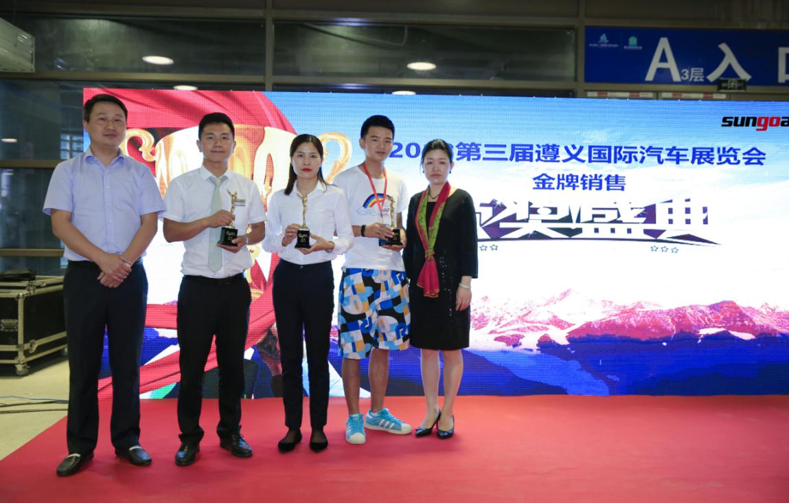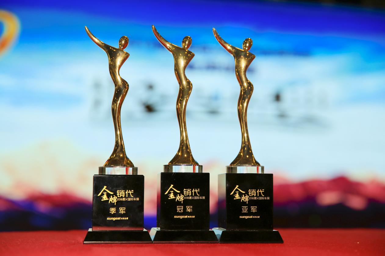 經過20天的激烈角逐,首屆遵義國際車展“金牌銷代”冠、亞、季軍已經誕生。來自上汽通用五菱遵義良駒汽車貿易集團有限公司銷售代表蔣斌鑫以56140票摘得冠軍殊榮;來自遵義寶源汽車銷售服務有限公司寶馬品牌銷售代表馮小利以52513票獲得本次活動亞軍;遵義眾鑫匯汽車銷售服務有限公司斯柯達品牌銷售代表吳可松以27030票獲得季軍。今天下午2點,金牌銷售代表頒獎盛典準時在B館2層尚格大舞臺舉行,尚格會展股份有限公司總經理任麗紅女士、貴陽尚格會展服務有限公司總經理李楊先生分別為獲獎的“金牌銷代”們頒獎,現場觀眾們共同見證了這一榮耀時刻。