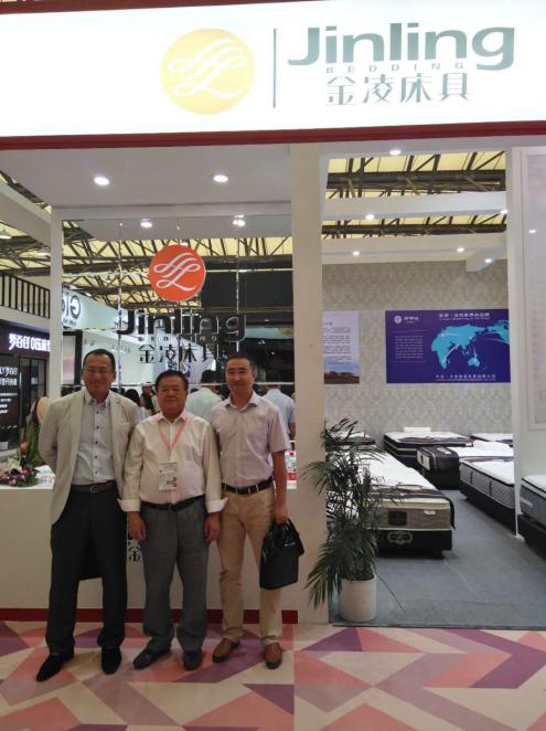 組委會負責人(右)與日本采購團組織者(左)及參展企業負責人(中),家具博覽會上合影