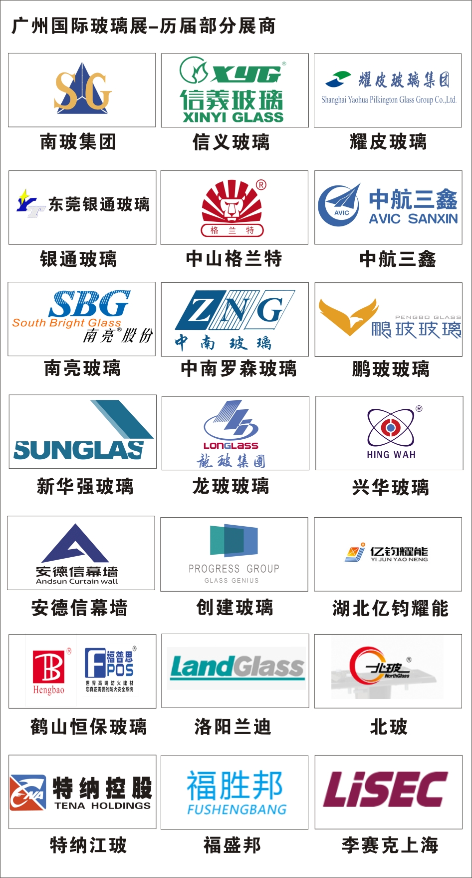 上屆展商反響熱烈,93%的展商對展會現場人氣及效果表示非常滿意,超過80%的展商表示明年還會繼續參展,會以更大展出面積亮相展會,行業龍頭企業紛紛亮相,其中包括:江門耀皮、東莞南玻、中山格蘭特、旗濱集團、中航三鑫、東莞銀通、本溪玉晶(迎新集團)、湖北億鈞耀能、中南羅森、深圳鵬玻、特納江玻、南亮藝玻、李賽克(LISEC)、洛陽蘭迪、安徽精菱、廣東金玻、維蘇威賽璐珂、河南誠信等數十家龍頭企業亮相展會參展,業內人士紛紛表示華南市場特別渴望一個專業的玻璃工業展作為行業的交流展示平臺。