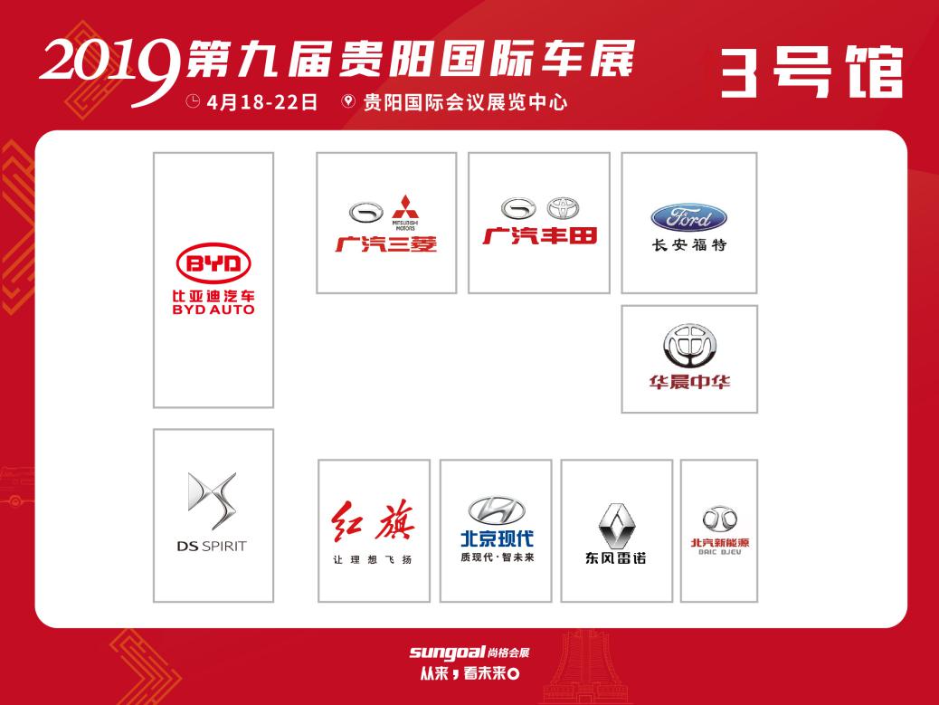 3號(hào)館(按順時(shí)針?lè)较颍罕葋喌掀?chē)、廣汽三菱、廣汽豐田、長(zhǎng)安福特、華晨中華、北汽新能源、東風(fēng)雷洛、北京現(xiàn)代、紅旗、DS