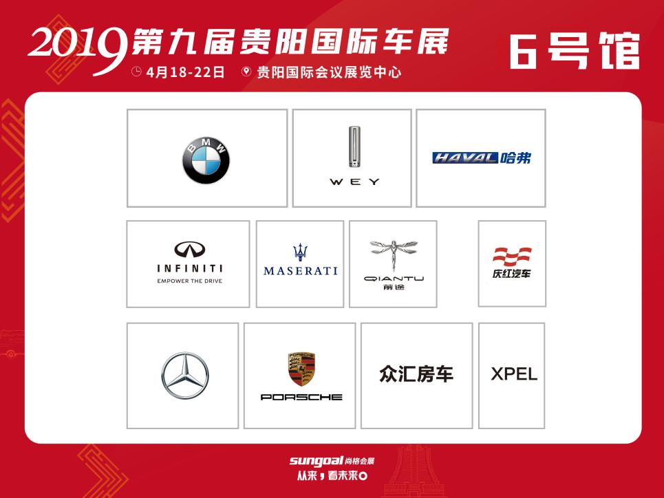 6號(hào)館(按順時(shí)針?lè)较颍簩汃R、WEY、哈佛、慶紅汽車(chē)、前途汽車(chē)、瑪莎拉蒂、英菲尼迪、眾匯房車(chē)、保時(shí)捷、奔馳