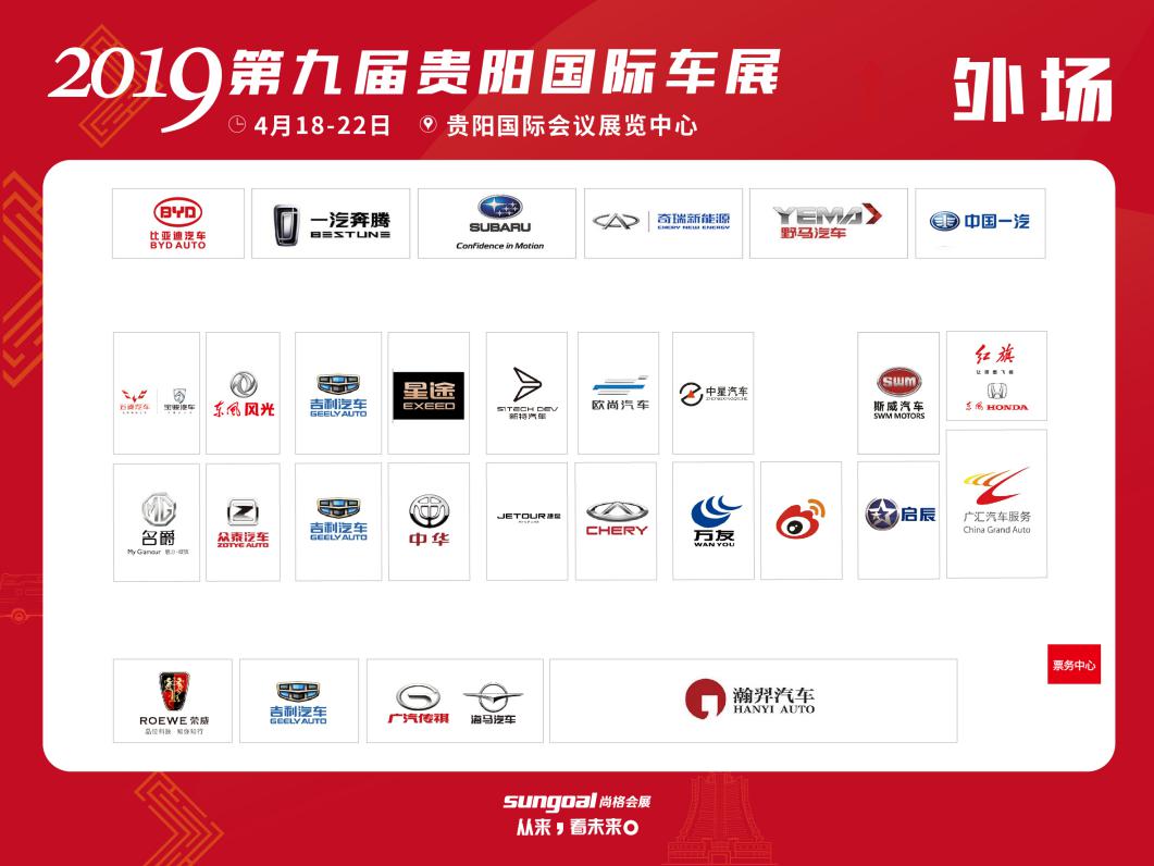 外 場(chǎng)(按順時(shí)針?lè)较颍罕葋喌掀?chē)、一汽奔騰、斯巴魯、奇瑞新能源、野馬汽車(chē)、中國(guó)一汽、紅旗、斯威汽車(chē)、中星汽車(chē)、歐尚汽車(chē)、新特汽車(chē)、星途、吉利汽車(chē)、東風(fēng)風(fēng)光、寶沃汽車(chē)、五菱汽車(chē)、MG、眾泰汽車(chē)、中華、捷途、奇瑞汽車(chē)、萬(wàn)友、新浪、東風(fēng)啟辰、廣匯汽車(chē)服務(wù)、瀚羿汽車(chē)、海馬汽車(chē)、廣汽傳祺、吉利汽車(chē)、榮威汽車(chē)