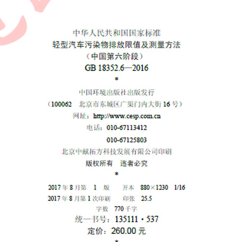國六標準的全文,有400頁之巨,可在中華人民共和國生態(tài)環(huán)境部官網下載到電子版——如果你有興趣翻到最后一頁,還會發(fā)現這套標準已有書刊號、且印刷出版,定價260元。