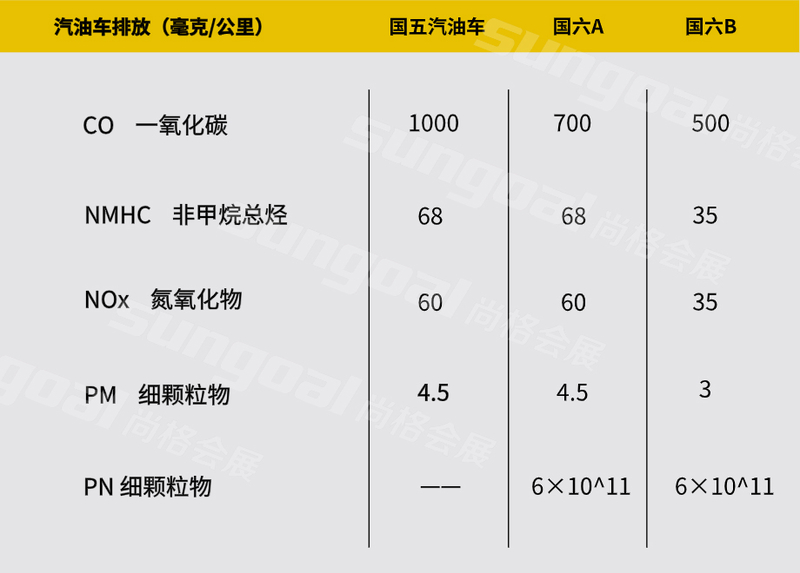 左側那一條排放物,不是化學系畢業(yè)的同學多半看不懂。沒關系,我們都是會阿拉伯語的人,數值上,從左往右逐漸減小的趨勢,大家都一清二楚。稍微計算一下,我們更不難發(fā)現,國六b的數值,幾乎就是國五的對折啊。
