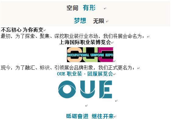 OUE上海國際職業(yè)裝博覽會(huì)更名:OUE職業(yè)裝·團(tuán)服展覽會(huì)