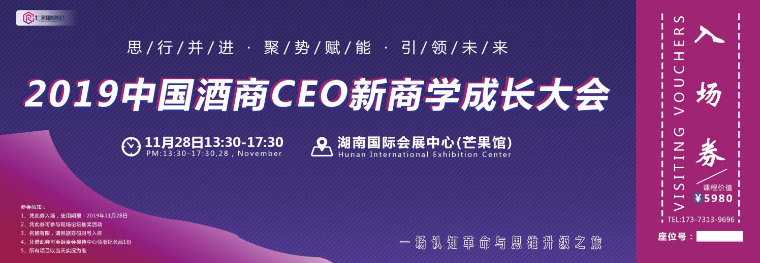 2019中國酒商CEO新商學成長大會將于11月28日在湖南國際會展中心舉行。鮑躍忠、楊公武、司勝軍、田沂桐等著名營銷專家齊聚,分析新消費趨勢,揭秘新營銷戰術。就“各企業面臨升級轉型,經銷商如何抓住新的轉型機遇?如何實現利潤翻倍?如何做好團隊管理及市場運營”等熱門話題進行交流探討,行業大腦匯集,為您的企業發展指點迷津,出謀劃策!
