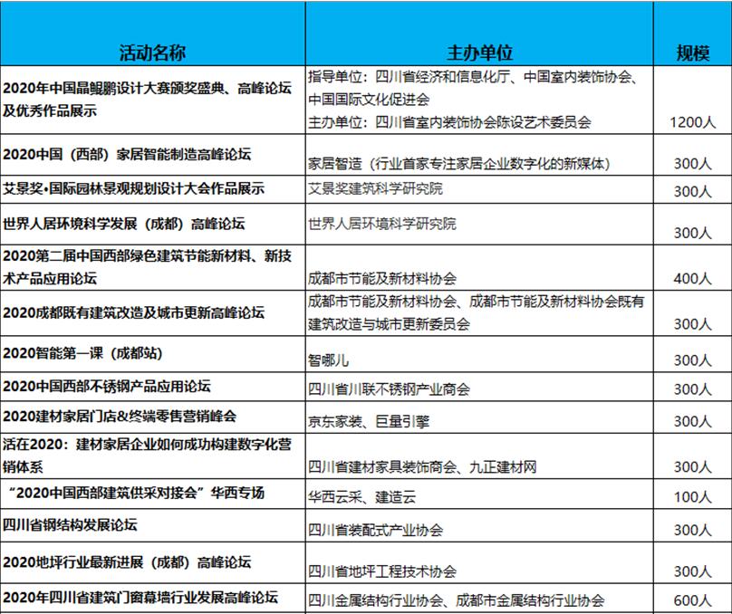 2020成都建博會現場活動包括: