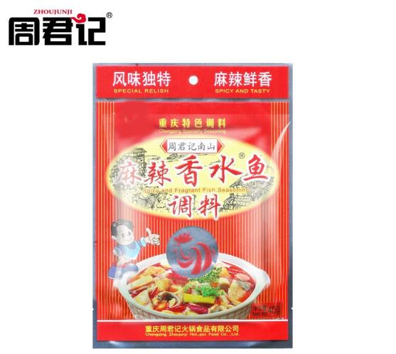 魚調料主要以麻辣類和酸菜類為主。我公司產品最具特色的是“麻辣香水魚”,該產品在麻辣味型的基礎上,獨具匠心地開創了“特色香味”,以單包料的形式,在生產階段即將各種味料經由特殊工藝充分炒制、融合,達到真正意義上的復合香型,并且香味保留時間長,甚至在保質期內存放時間越長,香味會越加濃厚。目前市場上有個別產品,采用三包甚至多包料,其實這更多的只是制造的一些噱頭,消費者在使用時非常不方便,失去了方便調料的意義,同時,僅僅靠消費者在自家廚房短短時間內簡單的炒一下,也不可能將原料中的各種香味充分的激發出來。