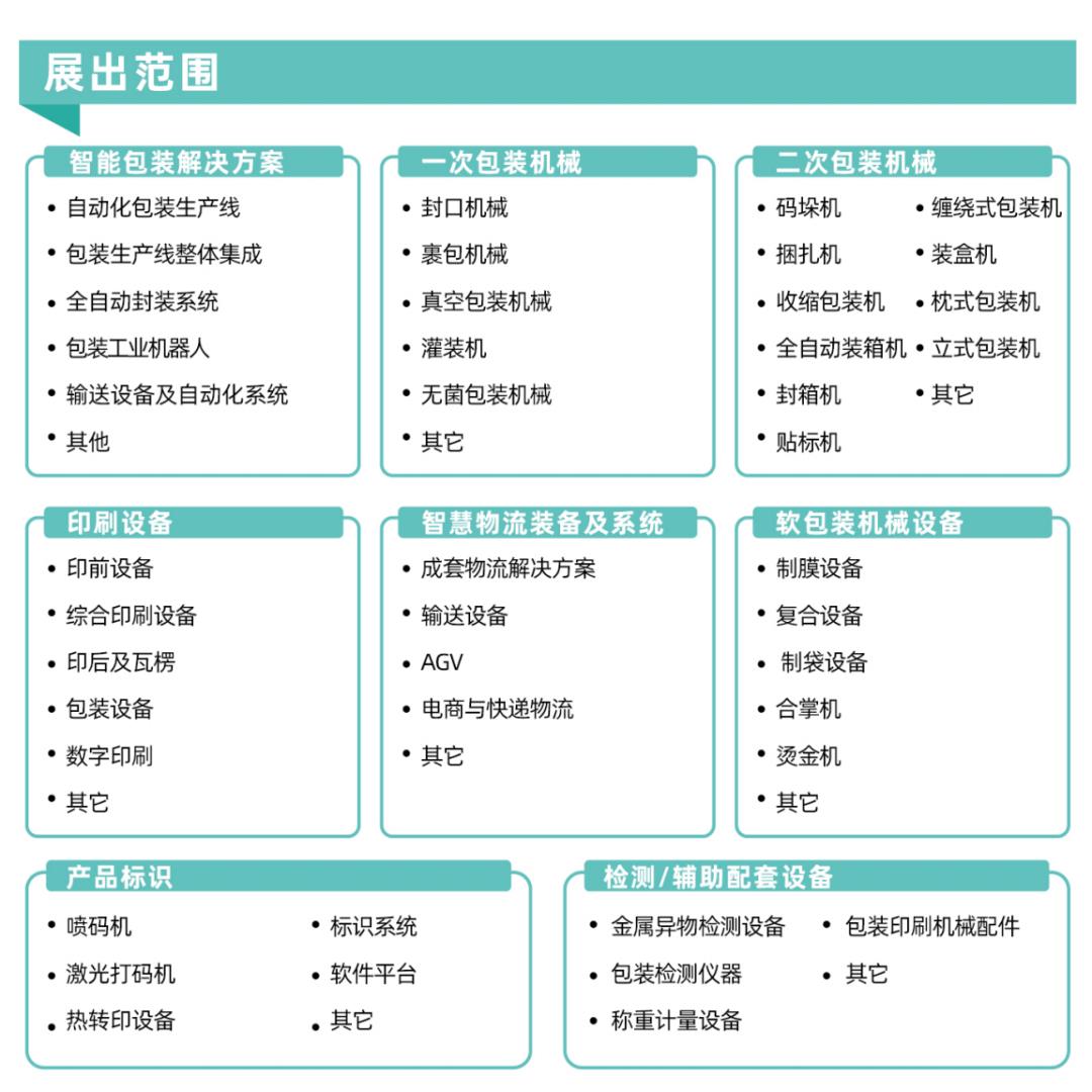 2022青島包裝工業展聚焦智能制造、工業4.0、創新包裝、“碳”中和、數字工廠等熱點話題,覆蓋智能包裝解決方案、自動化包裝機械、印刷設備、軟包裝機械設備、產品標識、智慧物流裝備及系統、檢測/輔助配套設備等包裝制造全產業鏈,將為現場眾多專業買家全景展示最新產品及前沿解決方案。