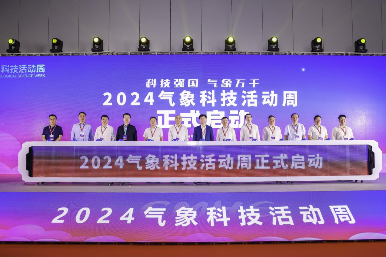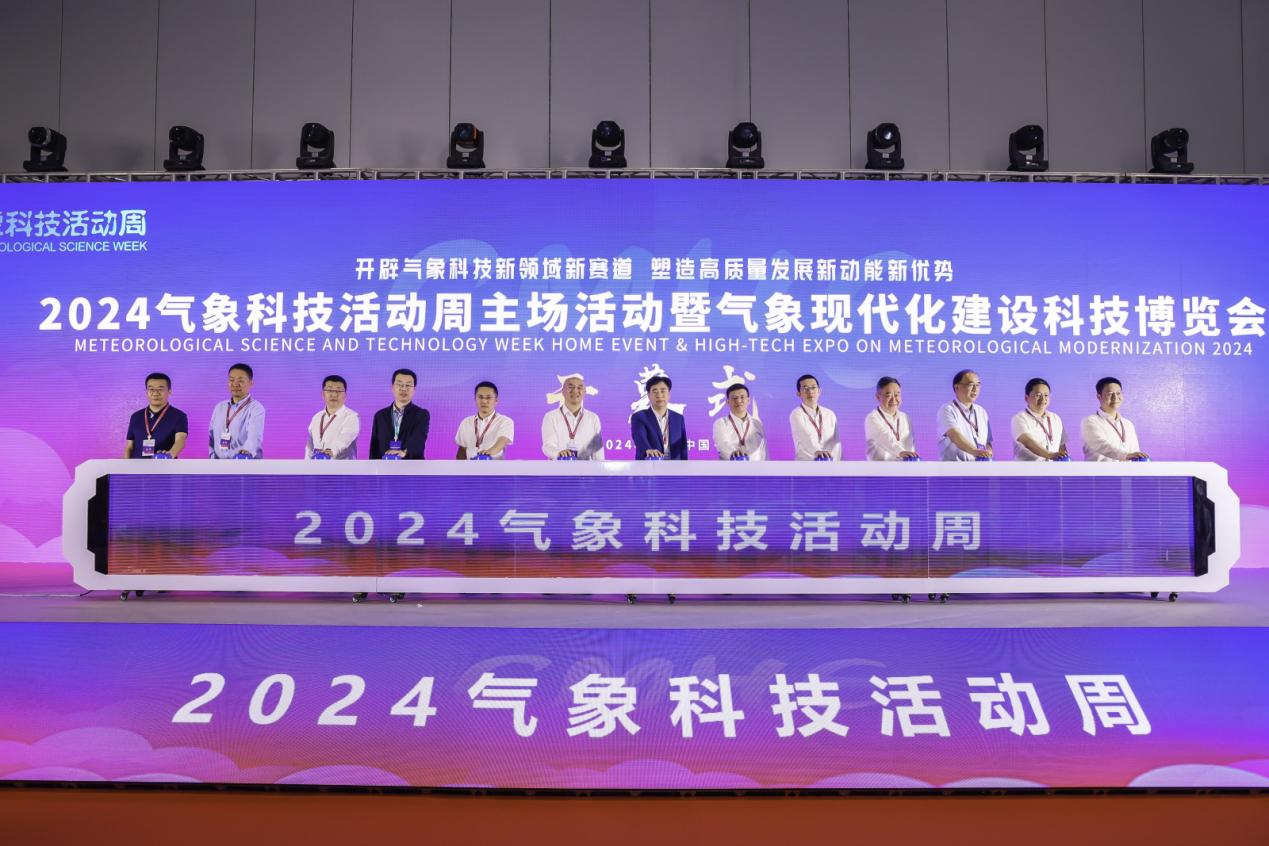 隨后,與會嘉賓代表上臺啟動按鈕,共同宣布2024氣象科技活動周正式啟動,2024氣象現代化建設科技博覽會盛大開幕!