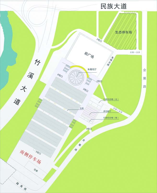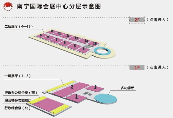 南寧國際會展中心由主建筑、會展廣場、行政綜合樓等組成,其中主建筑總建筑面積為15.21萬平方米,由會議、展覽和大型宴會廳三部分組成。會議部分包括會議中心、多功能廳、辦公場所等,擁有14個大小不同的會議廳(室),有功能齊全的聲擴(kuò)設(shè)備、10+1同聲傳譯系統(tǒng)、電視會議系統(tǒng)、公共廣播系統(tǒng)、安防系統(tǒng)、計(jì)算機(jī)網(wǎng)絡(luò)系統(tǒng)、新聞中心等,能滿足各種國內(nèi)國際會議、商務(wù)洽談和學(xué)術(shù)報告的舉行;朱槿花廳(多功能圓形大廳)使用面積2800平方米,能容納1500人會議、1000人宴會,是舉辦大型會議、展覽、宴會、演藝活動等的理想場所。大型宴會廳由能容納1000人同時就餐的大廳、34個包廂組成,裝飾格調(diào)高雅,環(huán)境舒適,是舉辦大型宴會和商務(wù)宴會的理想之地。展覽部分有兩層展廳,共有15個不同規(guī)格的展廳(最大展廳8100平方米,最小展廳2150平方米),展覽面積達(dá)4.8萬多平方米,可容納3360個國際標(biāo)準(zhǔn)展位。行政綜合樓建筑面積1.78萬平方米,由辦公場所、多功能展廳、展具加工間、倉儲用房等組成,同時配有可容300人的會議廳。主建筑展廳加上可搭建110個展位的朱槿花廳(多功能圓形大廳)、可搭建203個展位的行政綜合樓多功能展廳和集會廣場,展覽面積達(dá)8萬多平方米。此外,南寧國際會展中心還有用地面積3.56萬平方米、可停放1000多輛小汽車的生態(tài)停車場。